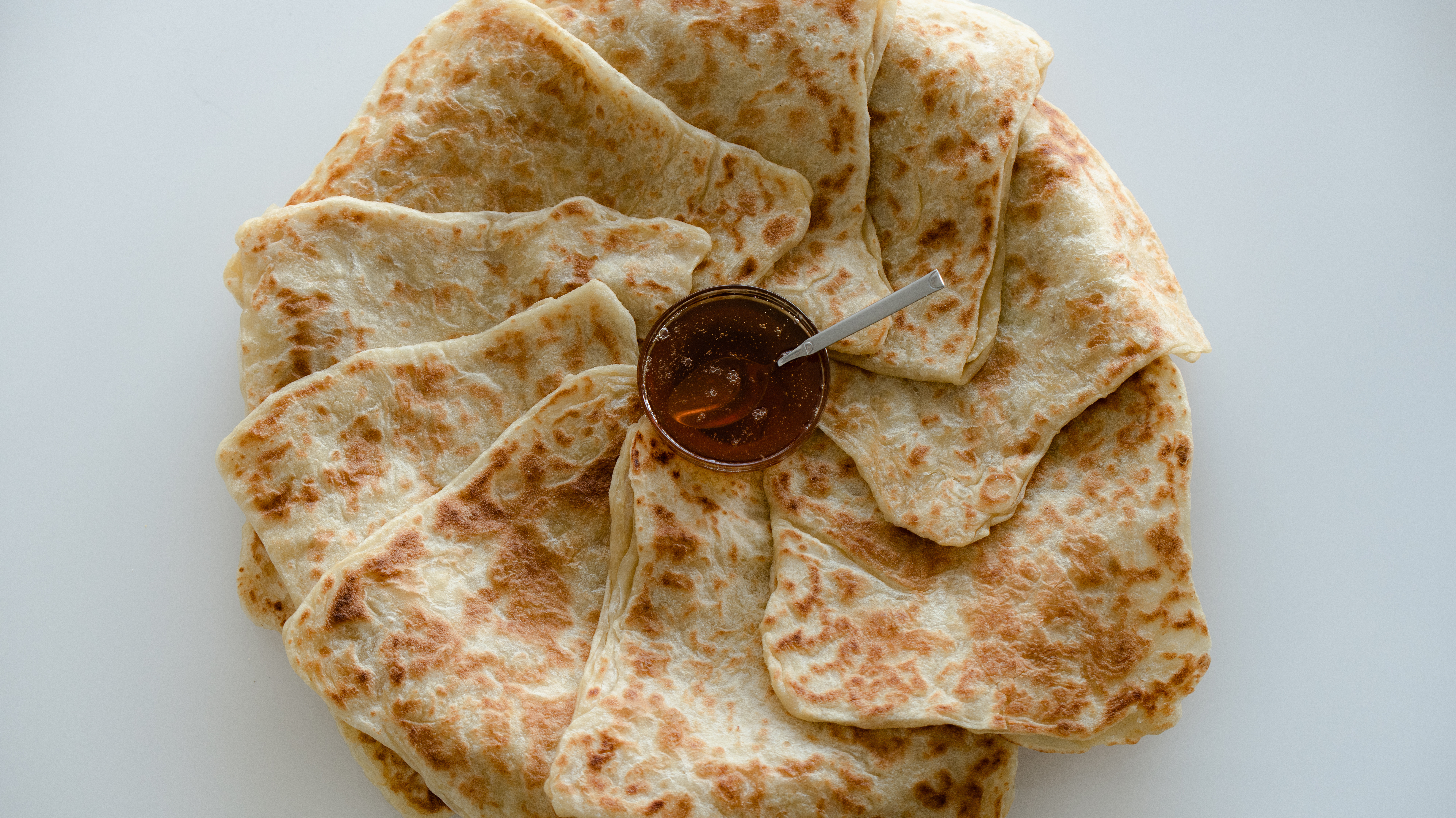 Spécialité de la cuisine indo malaisienne, voire singapourienne, le Roti Canai est une crêpe accompagnée d’une coupelle de sauce, généralement préparée à base de curry madras. Le Oxford English Dictionary affirme que le mot malais canai signifie « « « rouler (la pâte) finement ».
